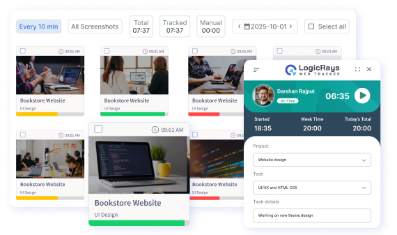 While your employees are engaged in their tasks, our time tracker seamlessly captures their screen activity