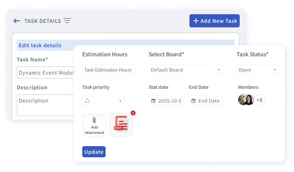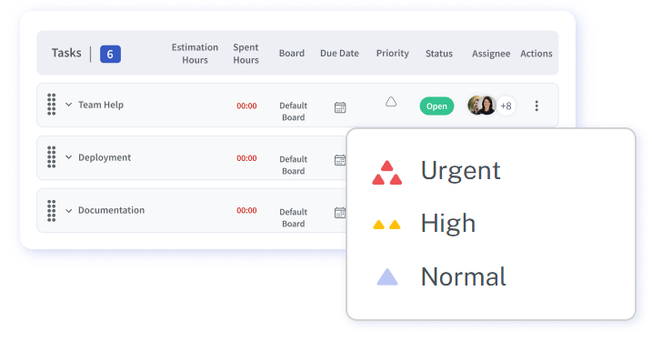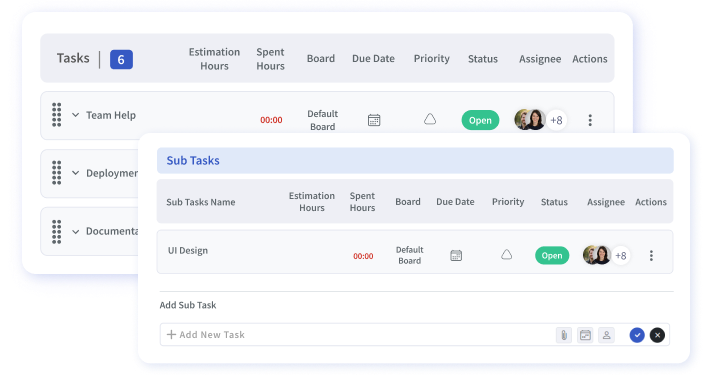 Create and assign tasks to workspace members, adding details like due date, priority, and status. For larger tasks, break them into subtasks.